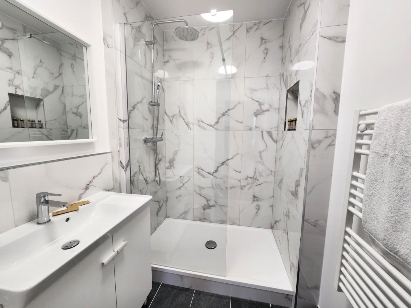 One-Bedroom Apartment. Boasting a private entrance, this apartment features 1 living room, 1 separate bedroom and 1 bathroom with a shower and a hairdryer. In the well-fitted kitchen, guests will find a stovetop, a refrigerator, a dishwasher and kitchenware. The apartment features a coffee machine, a seating area, a dining area, a wardrobe and a flat-screen TV. The unit has 3 beds.