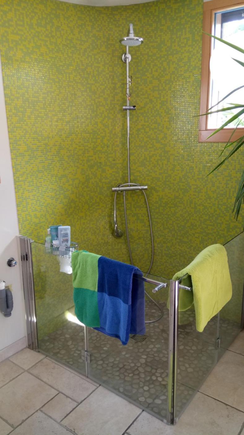 Double Room with Terrace. This double room has a electric kettle, private entrance, a garden terrasse and a big bathroom space.