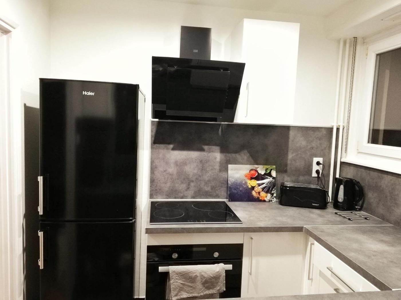 One-Bedroom Apartment. Featuring a private entrance, this apartment comprises 1 living room, 1 separate bedroom and 1 bathroom with a shower and a hairdryer. Meals can be prepared in the kitchen, which comes with a stovetop, a refrigerator, a dishwasher and kitchenware. Boasting a balcony, this apartment also provides a washing machine, a coffee machine and a flat-screen TV. The unit offers 2 beds.
