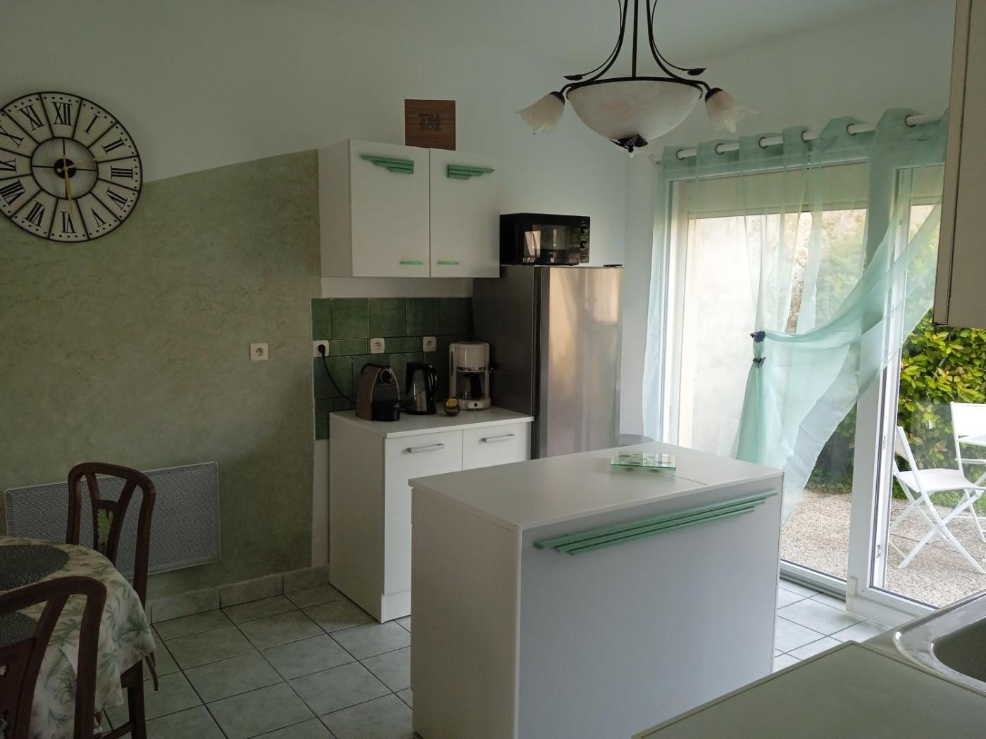 The holiday home with a terrace and garden views features 2 bedrooms, a living room, a flat-screen TV, an equipped kitchen with a dishwasher and an oven, and 1 bathroom with a walk-in shower. Towels and bed linen are featured in the holiday home. The property has an outdoor dining area.