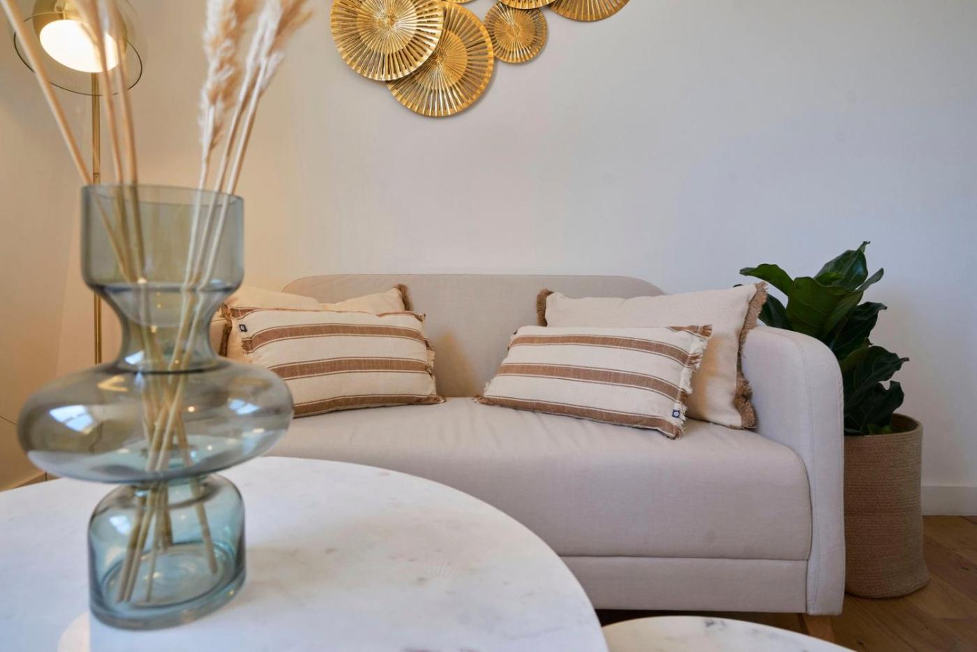 One-Bedroom Apartment. This apartment includes 1 bedroom, kitchen, a terrace and 1 bathroom with a shower. In the well-equipped kitchen, guests will find a refrigerator, kitchenware, an oven and a microwave. The apartment offers a TV with streaming services, a washing machine, a coffee machine and heating. The unit has 1 bed.