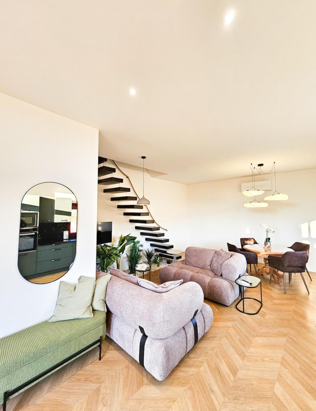 The holiday home is equipped with 2 bedrooms, 1 bathroom, bed linen, towels, a flat-screen TV with streaming services, a dining area, a fully equipped kitchen, and a terrace with garden views. The unit at the property features a walk-in shower and a dressing room. The property has an outdoor dining area.