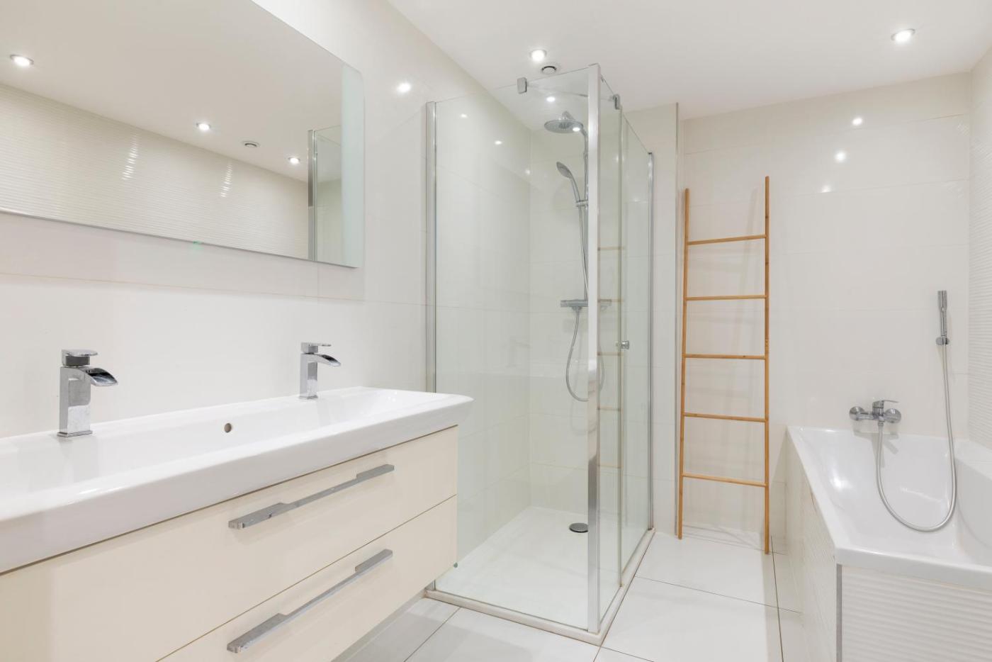 Two-Bedroom Apartment. This spacious apartment comes with 1 living room, 2 separate bedrooms and 1 bathroom with a hairdryer. The fully equipped kitchen has a refrigerator, a dishwasher, an oven and a microwave. The apartment features a washing machine, a tea and coffee maker, heating, as well as a flat-screen TV. The unit has 2 beds.