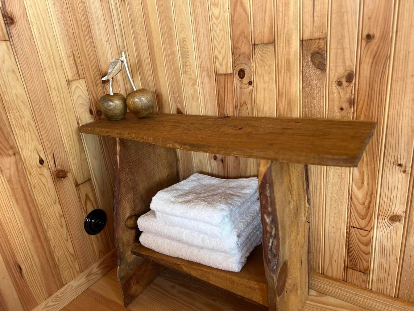 Towels and bed linen are featured in the lodge.