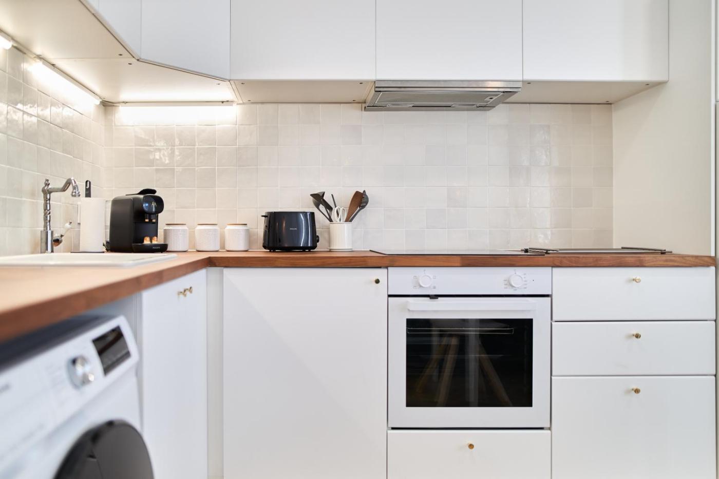 One-Bedroom Apartment. This apartment is comprised of 1 bedroom, a kitchen and 1 bathroom with a hairdryer. The well-equipped kitchen features a stovetop, a refrigerator, an oven and a microwave. The apartment offers a washing machine, a tea and coffee maker, heating and a flat-screen TV with streaming services. The unit offers 1 bed.