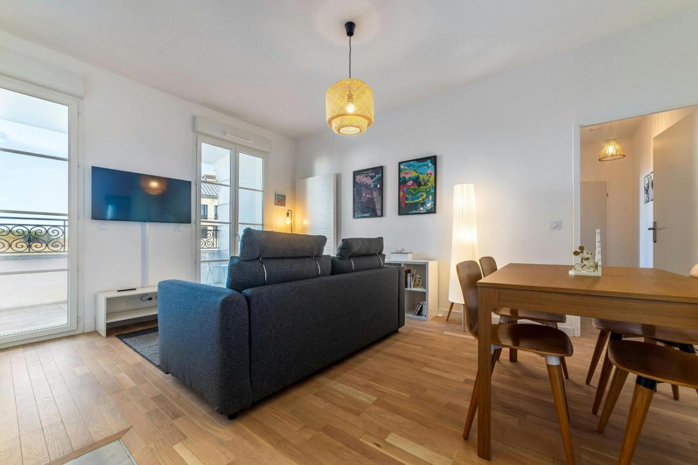 Hakuna Matata Lodge - Disney à 5 min is situated in Serris, 2 km from Val dEurope RER Station, 3.9 km from Disneyland Paris, and 36 km from Paris-Gare-de-Lyon. The property is around 37 km from Opéra Bastille, 38 km from Notre Dame Cathedral and 39 km from Sainte-Chapelle. The apartment features a terrace, a 24-hour front desk, and free WiFi is available throughout the property.